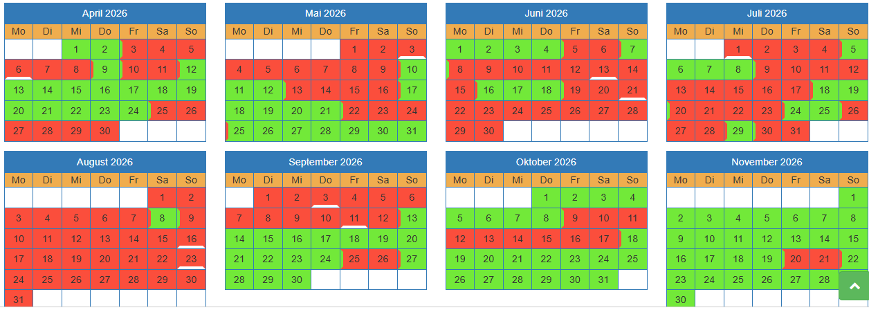Stand 10.04.26 > aktuelle Verfügbarkeit unseres Ferienappartements.